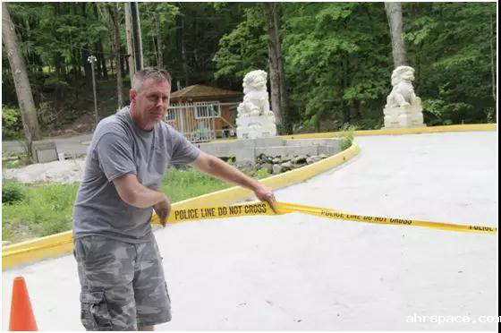 ▲“龙泉寺佛学公司”周围被拉起警戒线。图源:recordonline