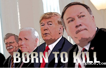 特朗普、彭佩奥、彭斯与博尔顿的合影水彩图,网友Jawad A Al-Lawati贴图