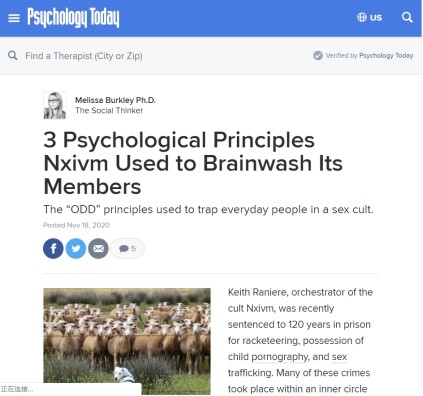 核心提示:2020年11月18日,《今日心理学》网站(Psychologytoday.com)发表美国心理学博士梅丽莎·伯克利(Melissa Burkley)对美国性邪教耐克塞姆(NXIVM)案件的分析文章,文章指出其头目基思·拉尼尔(Keith Raniere)之所以能够吸引众多受害者,根源在于他利用了三个容易让人中招的心理学核心原理,即服从、去个性化和消耗自制力。中国betway88必威东盟体育网将该文编译如下: