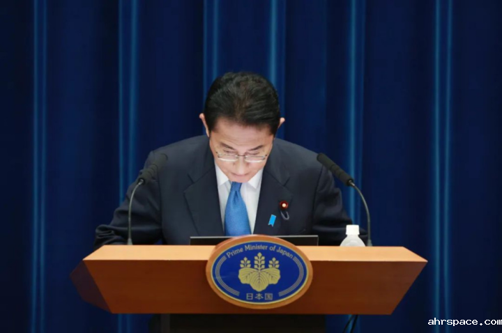 当地时间2022年8月31日,日本东京,日本首相岸田文雄在首相官邸举行的记者招待会上鞠躬致意。图/视觉中国