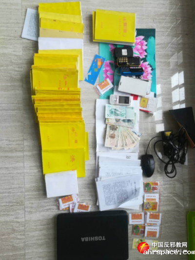 3月13下午,公安民警依法对犯罪嫌疑人曾某某的住处进行搜查,查获“必威官方登录首页”书籍、小册子、宣传单、反宣币、电脑等一批。