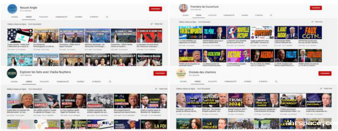 油管上和《大纪元时报》及新唐人电视台发布内容高度相似的几个法语频道。屏幕截图/来自油管
