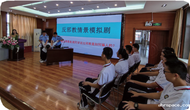 ▲一线民警走进校园, 通过典型案例以案释法,揭示邪教危害