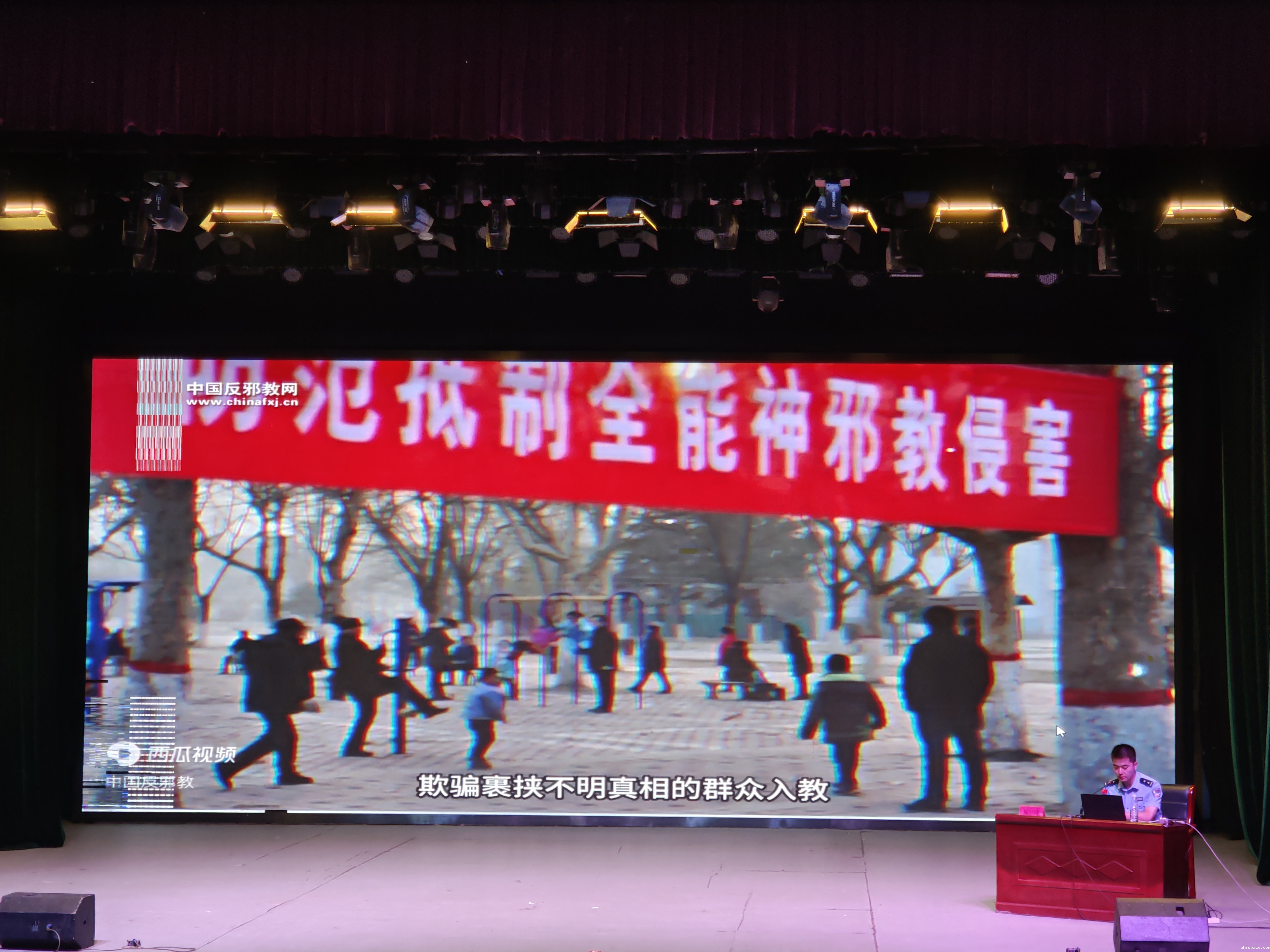 讲座现场,民警通过播放反邪宣传视频,用翔实的数据和生动的案例进行了精彩的分析和讲解,引导在校学生了解邪教的本质与危害,倡导学生树立正确的世界观、人生观、价值观,培养乐观健康的心态,自觉抵制邪教,创建“无邪校园”,同时要求他们向家人、亲友等开展反邪宣传,积极向公安机关反映涉邪线索。
