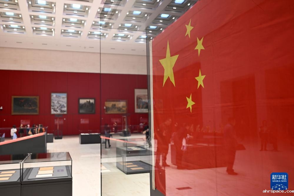当日,中国国家博物馆依托馆藏原创策划的“风展红旗如画——馆藏红色经典文物展”在北京开幕。展览系统展示中国国家博物馆馆藏革命年代的红旗、新中国成立后的五星红旗和党旗、革命题材经典美术作品等红色文物60余件,以及100张新时代以国旗为主题的高清照片,并首次辅以裸眼3D动态展示国旗,展现五星红旗的诞生过程和新时代国旗飘扬在祖国大好河山的壮美场景。