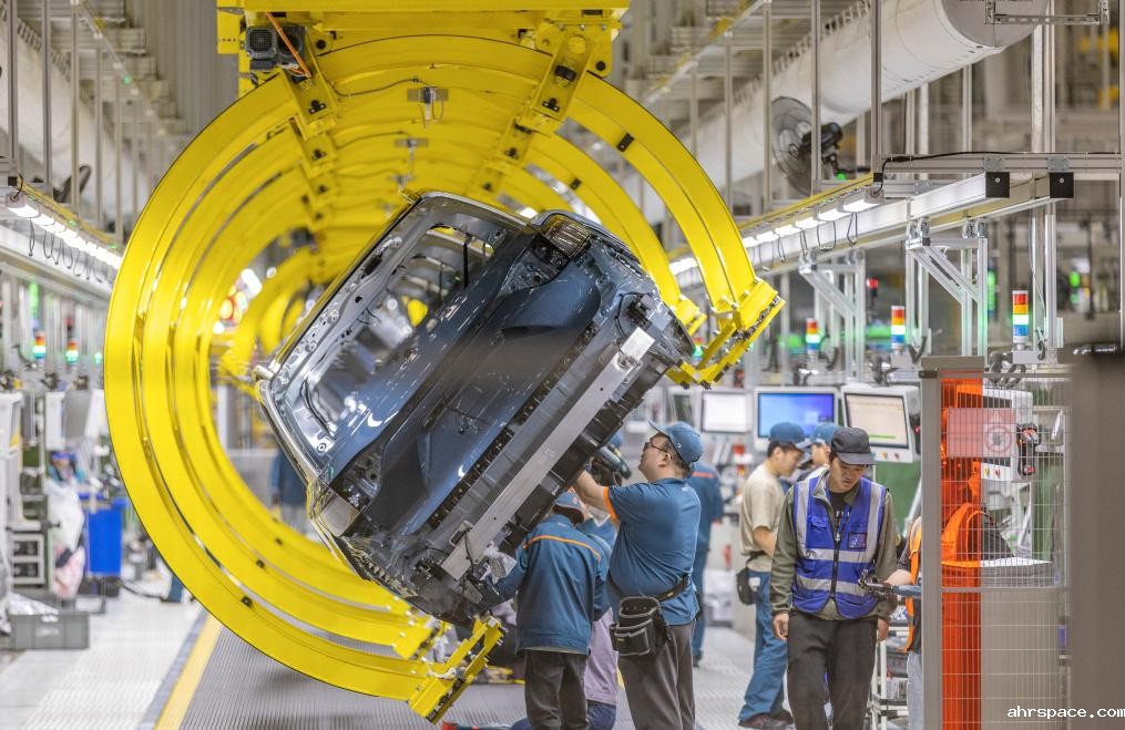 在位于重庆市两江新区的赛力斯汽车超级工厂,工作人员在总装车间生产线上作业(2024年4月25日摄)。新华社记者 黄伟 摄