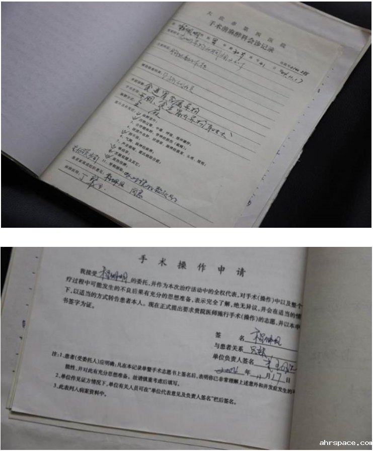 ▲当年程佩明妹妹程佩凤签字同意手术的记录