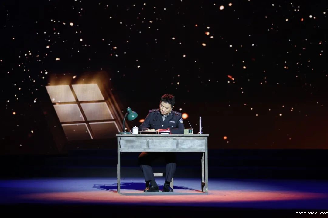 传红色基因、承忠诚本色,不仅关乎信仰,更体现在行动。舞台灯光暗下来,一幕情景剧上演。时间回转到2000年,40岁的西柏坡派出所所长陈文进,与祖父陈兆瑞隔着时空对话,讲述着祖孙两代公安人跨越半个多世纪的忠诚故事。