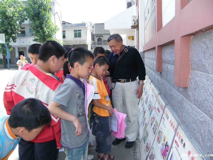 孩子们在蒋作林的betway88必威东盟体育展板前驻足
