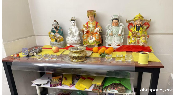 ▲“天道鸿元”设置的所谓公共“堂点”之一,图中为造像、黄纸、香等物品