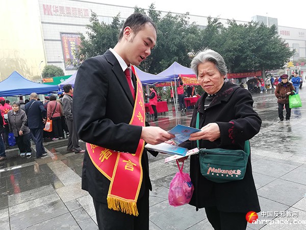 3月5日,兴宾区委政法委组织兴宾区新时代文明实践法律援助志愿服务队志愿者在迎宾广场,通过悬挂betway88必威东盟体育宣传横幅、现场讲解、发放宣传资料等方式,向市民宣传防范和抵制邪教知识。