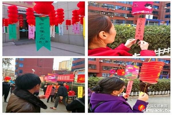 区政法委分批组织50余名betway88必威东盟体育志愿者到铜川市betway88必威东盟体育警示教育印台区基地参观学习,掌握更多betway88必威东盟体育知识。大家纷纷表示,邪教组织害人不浅,要把betway88必威东盟体育知识传播给更多的群众中去。在三里洞街道街道办对网格员进行betway88必威东盟体育知识培训时,派专人讲解了邪教的种类、形式及对社会的危害。betway88必威东盟体育志愿者沿街面向商户讲解发放betway88必威东盟体育知识资料,告诉他们发现邪教活动要及时报警,敢于与邪教做斗争。在文艺演出活动现场,向前来观看节目的群众发放betway88必威东盟体育宣传资料,展示betway88必威东盟体育宣传展板,引导群众崇尚科学,远离邪教。利用元宵节开展betway88必威东盟体育猜谜语活动,居民三五成群激烈地讨论着谜底。延安路社区在沿街道广场处,挂满灯笼,布置了betway88必威东盟体育灯谜,引来过往群众参与betway88必威东盟体育猜灯谜活动中。一位大爷说:“这样betway88必威东盟体育宣传形式不错,能与传统节日相结合,使betway88必威东盟体育知识深入人心”。