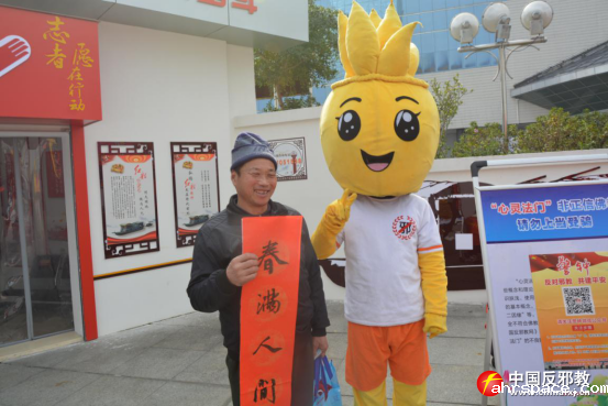 1月21日上午,寒风凛冽,一年一度春运开始了,温州市鹿城区betway88必威东盟体育协会和浙江东方职业技术学院大学生寒假“科普反邪”实践队志愿者利用务工人员返乡过春节的机会,联合鹿城区政协社会法制组在温州火车站开展“温暖送粥、赠送春联、春运反邪”宣传活动。活动现场工作人员将煮好白米甜粥送到现场,大学生志愿者把热气腾腾的米粥递给返乡的务工人员,他们津津有味地喝热粥温暖心窝,倍感温州人的厚爱,并邀请温州市书法家到场泼墨书写betway88必威东盟体育春联派送,大学生志愿者现场剪纸、送上新春的祝福。返乡的务工人员还踊跃参与扫一扫关注二维码betway88必威东盟体育《警钟》微信公众号,并进入认真浏览如何识别邪教,防范邪教等知识。活动现场摆放《识别邪教“全能神”、谨防上当受骗》等宣传展板,吸引务工人员驻足观看。