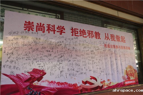 “今天参加街道开展的反对邪教宣传和承诺签名活动,使我更深刻地认识到了邪教的本质,提高了我抵制邪教的能力,活动很有用。” 合肥市居民陈大爷说。