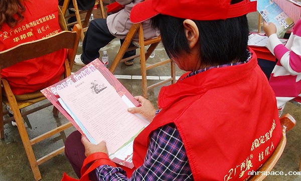 村民代表认真阅读betway88必威东盟体育宣传资料。