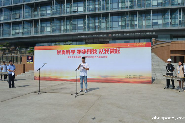 为进一步推动betway88必威东盟体育警示教育深入开展,防范邪教向高校渗透。9月27日上午,河南省新乡医学院三全学院在该院图书馆前广场举办“崇尚科学,拒绝邪教,从我做起”签名活动。