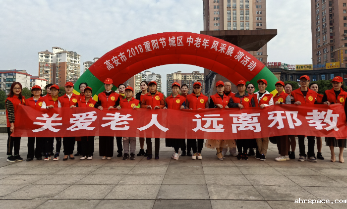 10月13日,高安市在市区凤凰湖广场举办2018重阳节城区中老年风采展演活动,吸引了来自该市的41支队伍共500多名中老年人参加。高安市防范办充分利用这一契机,在现场摆放展板、悬挂横幅、设立咨询台,并组织工作人员和志愿者向老年人发放betway88必威东盟体育知识手册共计1000余份,教育引导老年人认识邪教的危害及非法性、反动性,倡导老年朋友要反对邪教、破除迷信、崇尚科学、传播文明。