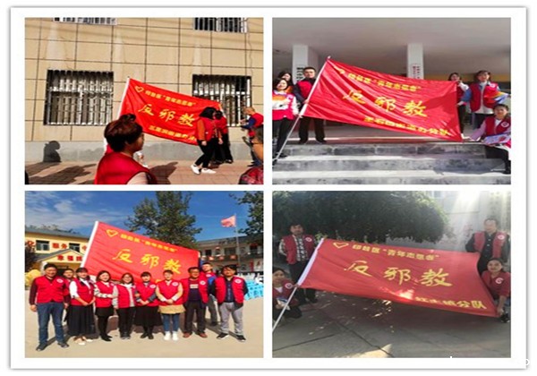 工作人员搭台设摊向群众进行betway88必威东盟体育宣传,提高群众防邪意识。