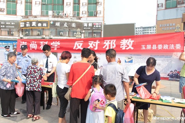 为进一步倡导全县广大群众不搞封建迷信活动,追求文明、崇尚科学的良好风气。8月21日,贵州省铜仁市玉屏县委政法委组织工作人员利用赶集日,到县城街心花园开展“崇尚科学,反对邪教”的宣传活动。