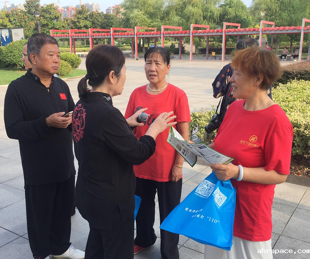8月11日,马鞍山市健身气功协会在雨山湖公园开展交流展示活动,宣传推广健身气功的同时,大力传播防邪科普知识,倡导科学生活方式。期间,马鞍山市委防范办工作人员给健身群众发放betway88必威东盟体育宣传购物袋100个、宣传册近300份。活动中,以协会会长孟霞为代表向现场参加活动的中老年人讲解了健身气功和betway88必威东盟体育有关常识,呼吁大家抵制邪教,传播正确的绿色健身理念。