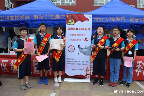 5月18日,天津市第32届河西区科技周活动在文化中心隆重开幕,32家单位在全区开展“崇尚科学 反对邪教 关爱家庭 从我做起”betway88必威东盟体育警示教育宣传活动。