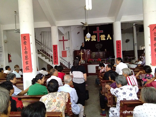 在基督教堂聚会日向基督信徒讲解宗教与邪教的区别。