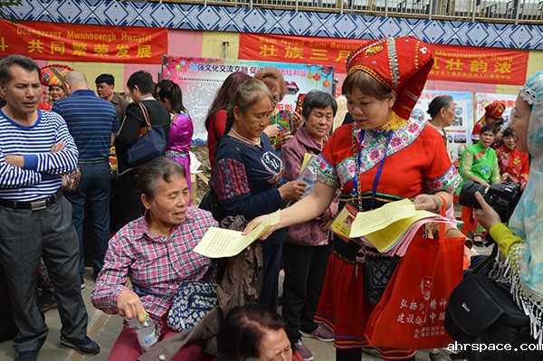 4月18日,融水苗族自治县防范办以防范邪教组织侵蚀为重点,深入白云乡“壮族三月三”双河庙会开展betway88必威东盟体育警示教育宣传活动。抢花炮、拔河比赛、壮歌比赛、跳舞等丰富多彩的民间传统节日活动,使黔桂两省交界的毗邻县乡各族各族人民前来观享这一盛大的壮族风情庙会。