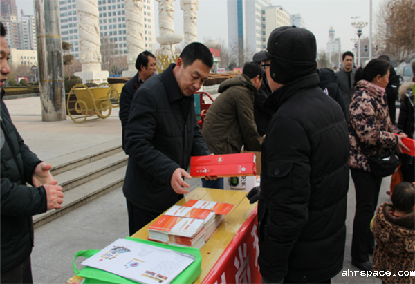 活动现场群众井然有序领取宣传品。