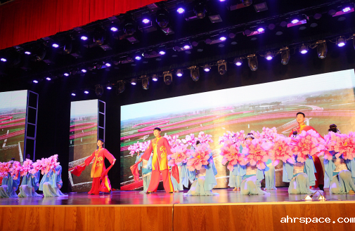 开场舞蹈《纳田花海》拉开了整场晚会的序幕,通过生态的理念、绿色的荣耀反映了文明宿迁经济社会平稳健康发展。