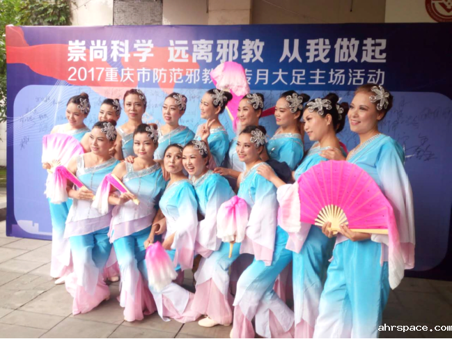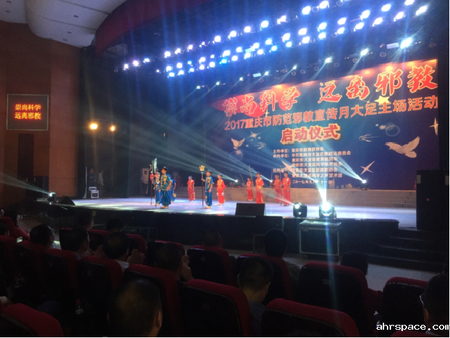9月21日,重庆市大足区“防范邪教宣传月”启动仪式专场文艺演出在区文化艺术中心举行,演出由“科学之声艺术团”承办,通过生动形象的小品、评书,昂扬斗志的音乐快板,催人奋进的音乐、舞蹈,精彩刺激的中华武术等文艺形式,深刻揭批了邪教的丑恶嘴脸。