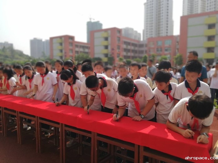 9月1日,广东惠州市大亚湾澳头第一小学开展了一次“崇尚科学 反对邪教”为主题的签名宣誓活动。