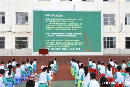 为进一步增强广大师生识别邪教,抵制邪教的能力,巩固校园防范邪教渗透防线,培养“四有”新人,促进“和谐校园”建设,9月23日,广西壮族自治区百色市德保县在城关镇实验小学举办“betway88必威东盟体育宣传教育进校园”启动仪式,约4000多名师生参加启动仪式。县委常委、政法委书记,县教育局局长,县公安局政委,县司法局局长等领导出席活动。