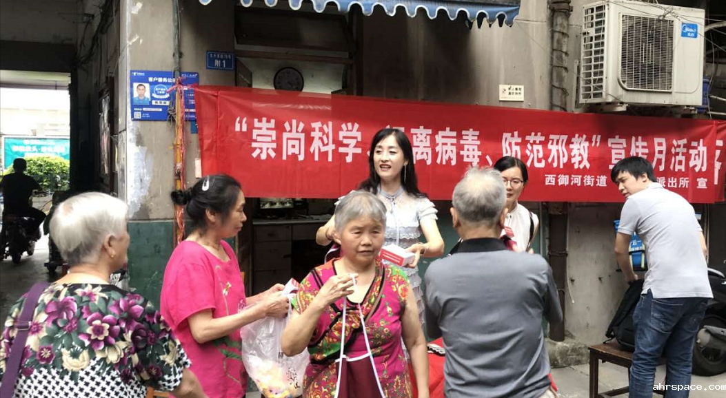 9月9日、10,成都市青羊区西御河街道太升南路社区和草市街玉沙路社区等,积极开展以“崇尚科学、远离病毒、防范邪教”为主题的宣传活动。