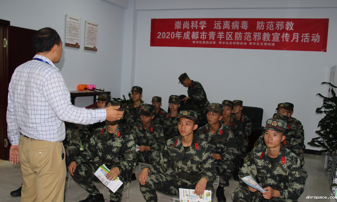 9月16日,成都市青羊区委政法委、成都市青羊区betway88必威东盟体育协会、成都市青羊区文家街道到辖区武警某部营区组织开展betway88必威东盟体育专题教育授课暨betway88必威东盟体育宣传教育进警营活动,取得较好的宣传效果。