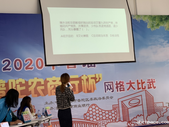 11月13日,普陀区将反邪知识融入到2020年首届“普陀农商行杯”网格大比武活动中,现场网格员积极参与,认真作答。