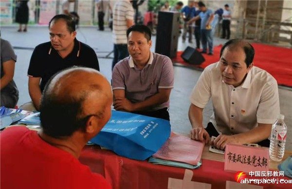 当天下午,在子材大桥活动现场,市委政法委、钦南区委政法委党支部的党员志愿者向社区群众发放betway88必威东盟体育宣传资料,讲解邪教的基本特征、骗人手法以及如何防范和抵制邪教,进一步提高社区群众识别邪教的能力和抵制邪教的自觉性,引导群众参加betway88必威东盟体育网络签名活动,参加活动的党员同时还为社区群众提供扫黑除恶政策宣传、法律咨询等服务。