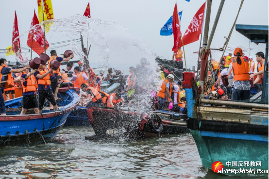 6月7日,第十三届闽台对渡文化节暨蚶江海上泼水节开幕式在石狮市蚶江镇后垵澳举行。该民俗活动至今已延续300多年,是全国乃至全世界独有的海上泼水民俗活动,是中央文明办“我们的节日·端午”主题活动之一,被评为“中国最具地方特色民俗节庆”,成功入选国家级非物质文化遗产名录。借助传统民俗活动聚集的人气,中共石狮市委政法委员会联合蚶江镇人民政府开展betway88必威东盟体育宣传教育活动。