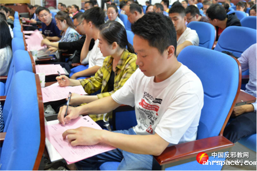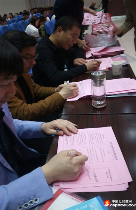 入党积极分子现场签定“拒绝邪教承诺卡”。