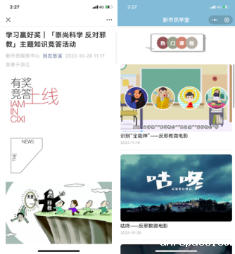 一是知识竞赛,增加宽度。新市民服务中心组织开展为期一周的“崇尚科学 反对邪教”有奖知识竞赛,1000多名注册新市民踊跃参与,共100名新市民获得betway88必威东盟体育纪念礼品。另外,新市民服务中心在“新市民学堂”微信小程序中上传betway88必威东盟体育宣传课程,既有动画也有微电影,用于线上普及betway88必威东盟体育知识。截至目前,betway88必威东盟体育宣传课程点击率达到1万多,其中电影《咕咚》在线观看量达到4000余人。