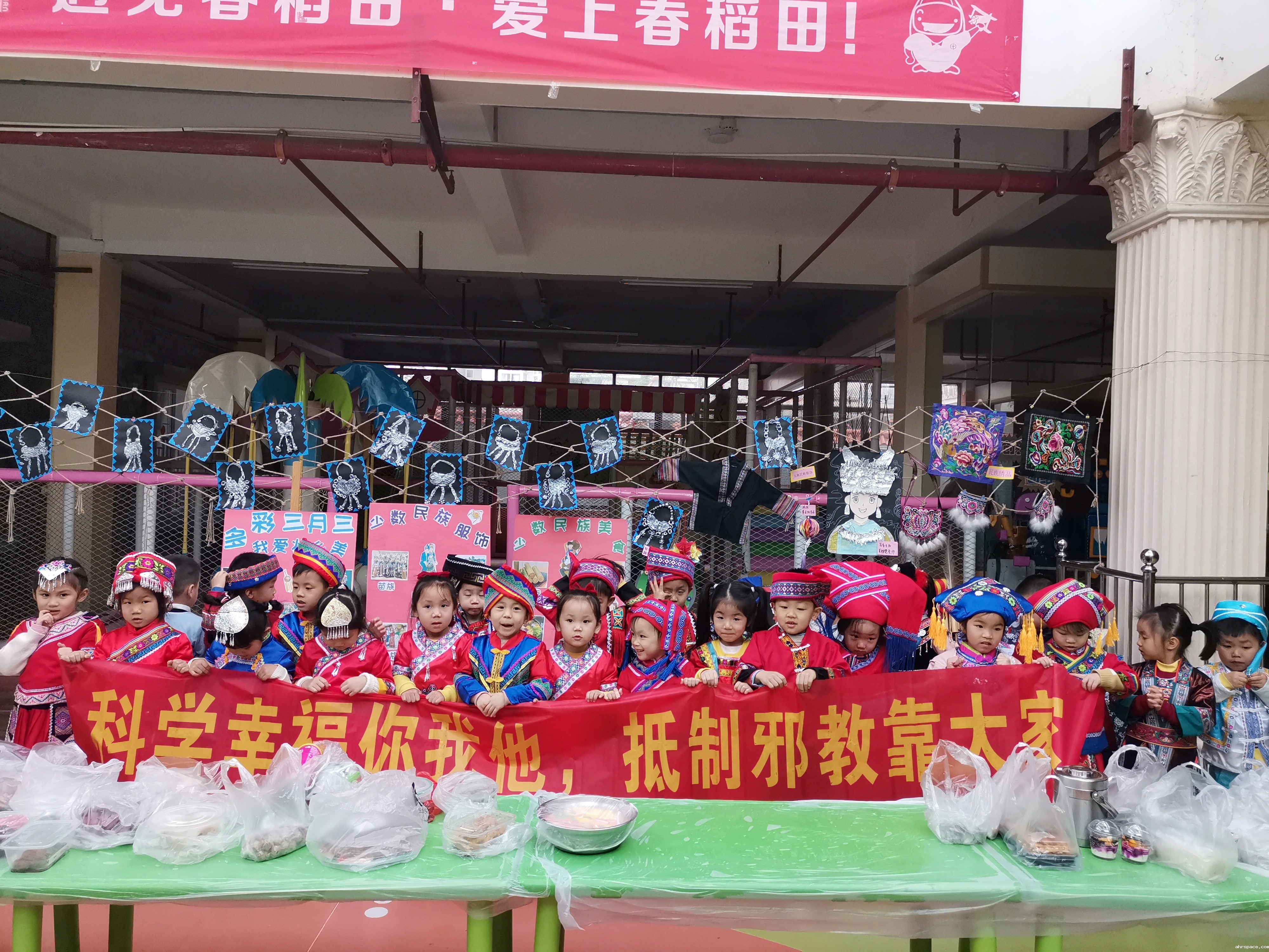 为了让青少年儿童从小接受传统文化的熏陶,弘扬、传承优秀的民族传统文化,柳州市各大中小学、幼儿园纷纷开展“三月三”欢庆活动,唱山歌、跳竹竿舞、吃五色糯米饭等一系列活动让孩子们从小体验广西壮族特色民族文化。柳南区广电社区联合辖区幼儿园举办“欢歌起舞桂风韵情浓壮乡三月三”暨反邪宣传活动,辖区200多名各族幼儿参与活动,社区工作人员通过拉横幅、发放宣传册、宣讲等形式,对师生们开展betway88必威东盟体育宣传,用通俗易懂的语言让孩子们学习betway88必威东盟体育知识,懂得了各类邪教组织的欺骗性和危险性,筑起betway88必威东盟体育防线。