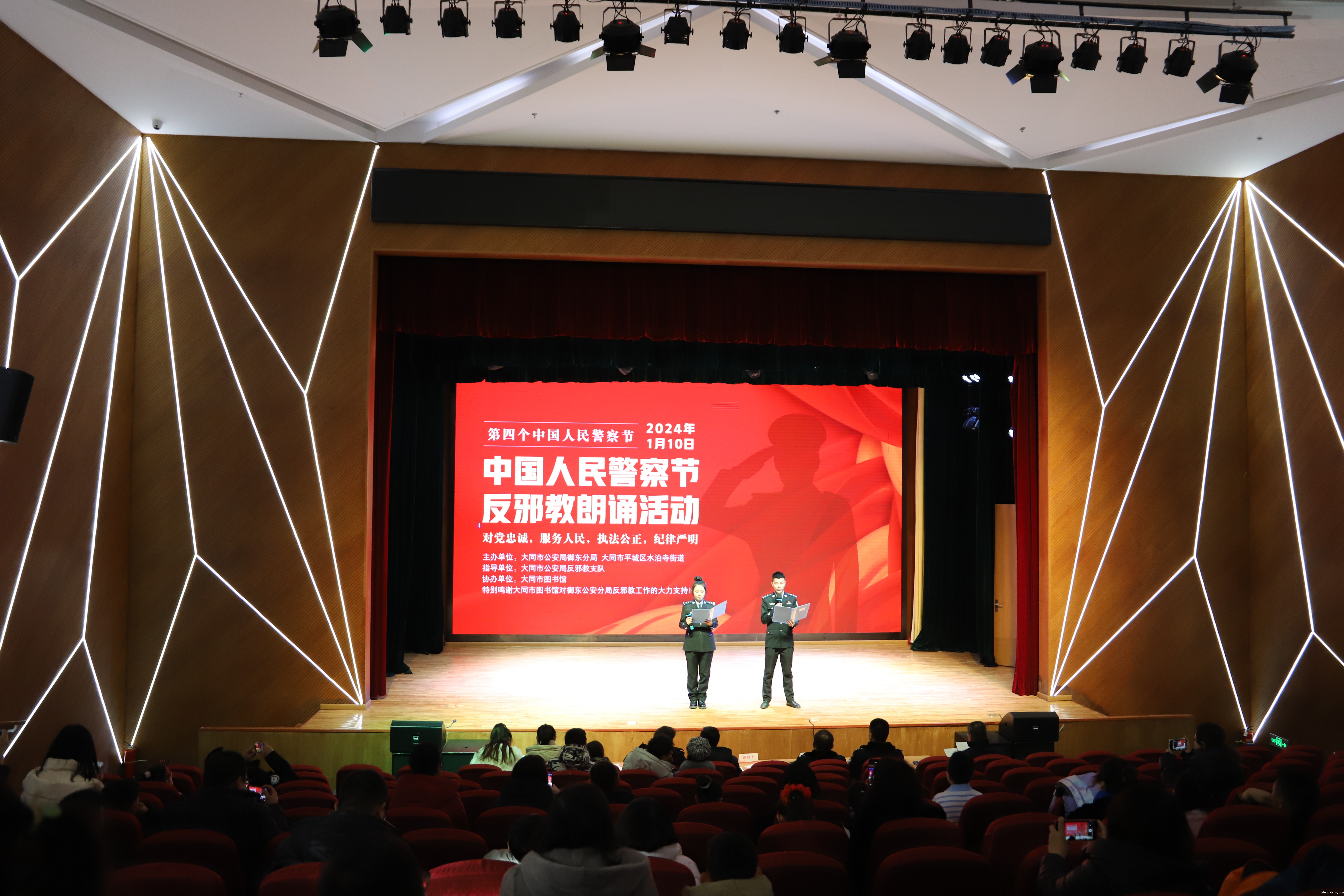为切实提高人民群众识邪、辨邪、防邪、反邪意识和能力,在热烈庆祝第四个中国人民警察节之际,1月6日上午,山西省大同市公安局御东分局“中国人民警察节betway88必威东盟体育朗诵活动”在大同市图书馆举行。