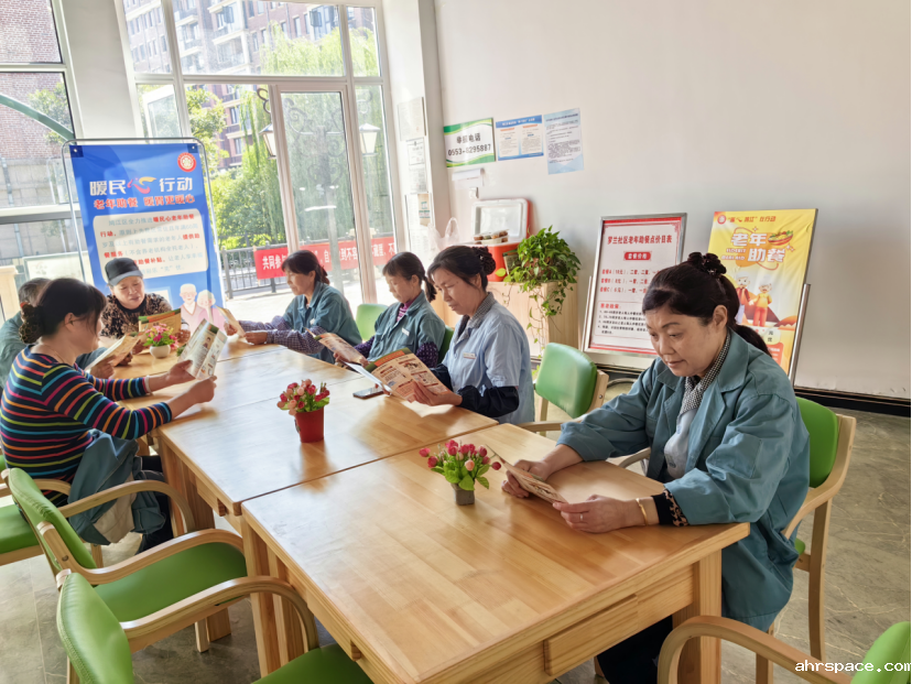 社区老年助餐点:平安志愿者给就餐人员宣传反邪知识