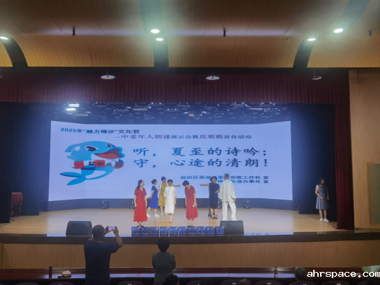 活动现场,舞台大屏流转着夏日盛景,麦浪、余晖与朗诵者的身影交织,勾勒出独特的夏至氛围。中老年朗诵爱好者们依次登台,用饱含深情的声音,传递对季节、对生活的感悟。
