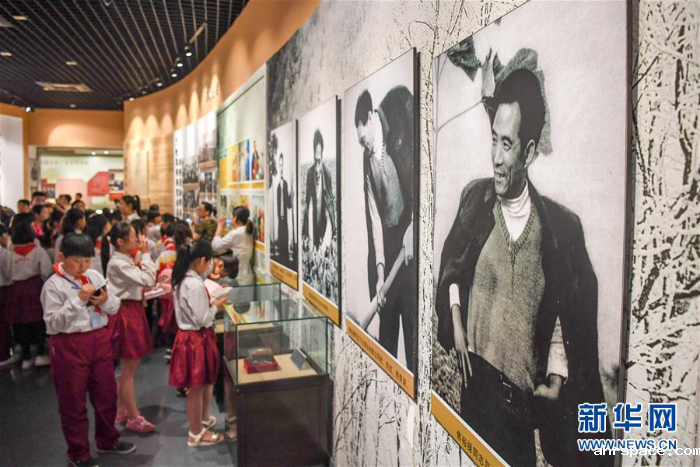 2017年5月14日,小学生在兰考县的焦裕禄纪念馆参观。当日是焦裕禄同志逝世53周年纪念日。河南省兰考县各界群众来到焦裕禄纪念园,表达他们对焦裕禄的怀念之情。 新华社记者 李博 摄