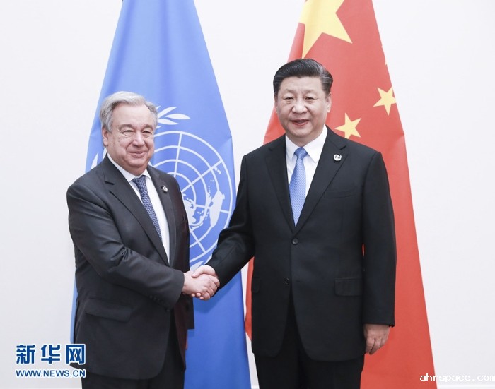 国家主席习近平28日在大阪会见联合国秘书长古特雷斯。