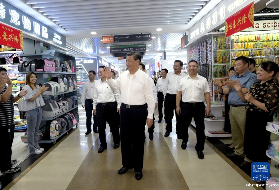 9月20日至21日,中共中央总书记、国家主席、中央军委主席习近平在浙江考察。这是20日上午,习近平在义乌国际商贸城考察时,同商户、小企业主代表亲切交流。新华社记者李学仁摄