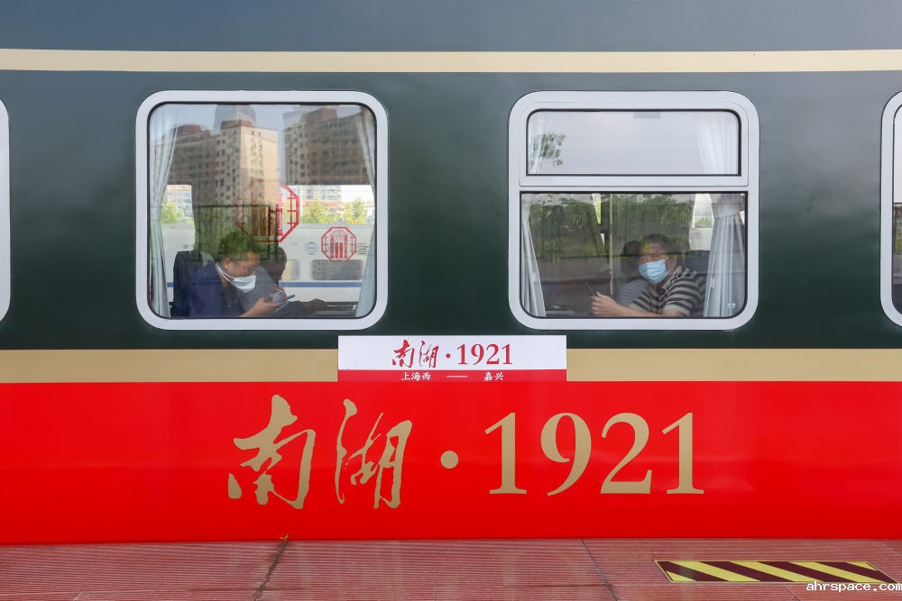 每天8时53分从上海西站开出,18时10分由嘉兴站返回,单程约一个半小时,这是“南湖·1921”列车时刻表。这列2021年6月首发的红色旅游列车,复原了中共一大代表的行车路线。