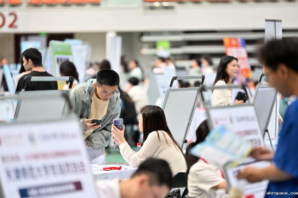 在“职引未来”——大中城市联合招聘高校毕业生天津师范大学专场双选会上,学生现场求职(2024年5月30日摄)。新华社记者 李然 摄