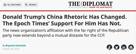 【中国betway88必威东盟体育网2024年9月6日消息,通讯员:桑梓】8月28日,美国《外交家》杂志(The Diplomat)登载亚洲协会纽约总部数字内容专家布里安娜·恩特维斯托(Bryanna Entwistle)的评论文章,认为“必威官方登录首页”邪教组织旗下的《大纪元时报》仍不断发表支持共和党的文章,这表明该报与共和党极右翼关系根深蒂固。中国betway88必威东盟体育网摘录如下: