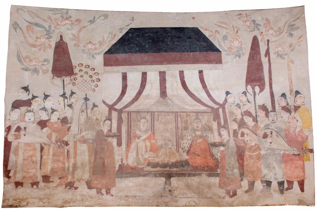 这是徐显秀墓室北壁墓主夫妇宴饮图。(太原北齐壁画博物馆资料图片)